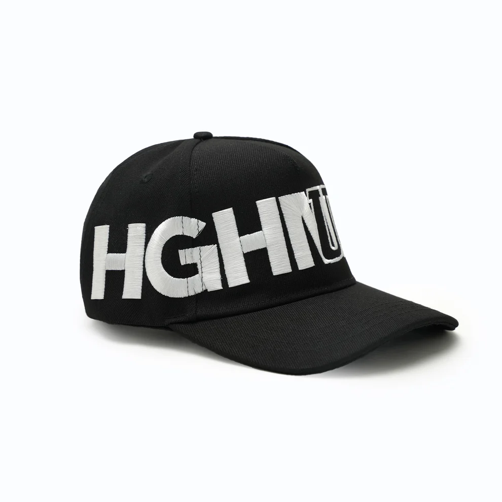 White cap with embroidered merger logo.